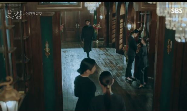 Lee gon looks at the ring for a moment and grabs it from the air in frustration. He walks away back into the Palace. After sometime, he realises that the time hasn’t started moving yet. He notices the staff standing still. Just then, time starts moving and the staff are startled seeing him there. Seok Ho-pil rushes up to Lee gon apologising for not following him.
