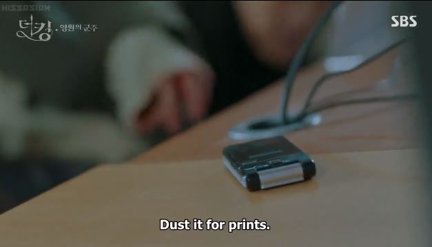 Later, Shin jae walks into the police station bleeding. Tae Eul is shocked to see him in this state. He puts the 2G phone on the table when she says they have to go to the hospital. He says the phone came to him too and tells her to dust it for prints. Tae Eul takes him to the hospital.