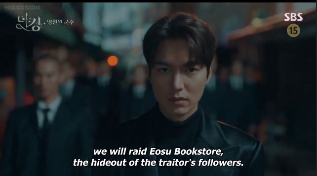 Later, Lee Gon and the Royal guards stand outside Eosu bookstore ready to raid it. He tells the Royal Guards that it is the hideout of Lee Lim’s followers. The snipers surround the store. Seok Pil asks if they should capture them alive. Lee Gon orders them to kill the followers.