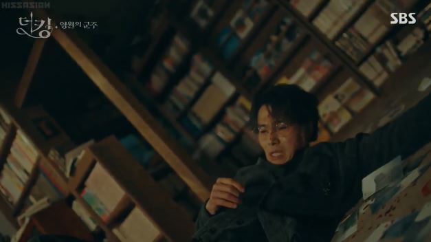 The Royal guards take out all the followers one by one, as they rush out of the bookstore. Lee Gon follows the Royal Guards into the bookstore.