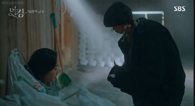 Lee Gon walks forward, slaying the thugs on his way. Tae Eul sobs as she watches Lee Gon fiercely slashing the thugs. Lee Gon stops as he sees Tae Eul.