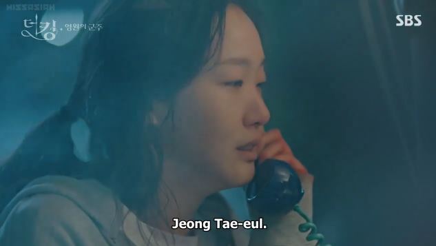 Tae Eul’s voice cracks as she says, “Lee Gon. It’s me, Jon Tae-Eul. You wont believe me, but I’m in the Kingdom of Corea now. I’m being chased by someone. I’m headed to the palace now. I’ll hurry. I’m on my way there now.” She is cut off by the recorded message that says, “Message recorded. Thank you for using our service”. Tae Eul starts crying as she says, “So look for me when you get this message.” She puts the phone down and starts crying.