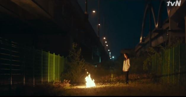 Ji-won goes to the police station and takes Do Hyun Su’s bag. She takes it far away and burns it along with the cassette player. She watches the burning pile as she says, “Okay, I’ll let you live as Baek Hee Sung.” She walks away after the whole pile burns to dust.
