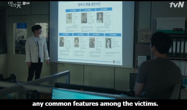 At the police station, Choi says there is no common feature among the victims. Ji-won says the common feature among the victims is that no one looked for them once they disappeared (except Jung Mi Sook). Ho Jun says the police didn’t do a thorough investigation because the culprit Do Min Seok died. Ji-won says they know Jung Mi Sook’s whereabouts up until the day she went missing on May 11th 2002. Upon her asking, Ho Joon brings up the map which they worked on.