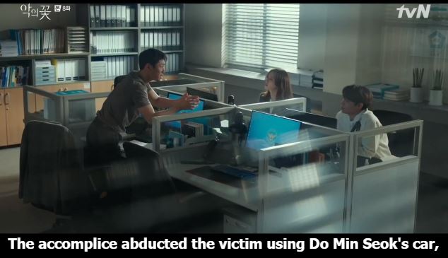 Choi says the accomplice abducted the victim using Do Min Seok’s car, locked her in the trunk and left her there. He says Do Min Seok drove the car from there and transferred the victim to the workshop basement. Choi says it means they met twice. He says Do Hyun Su would’ve seen the accomplice then. He says they would’ve exchanged car keys twice. Ho Joon says the accomplice might have left the key in the car. Ji-won says he can’t afford to leave the doors open with the victim in the trunk. They wonder how to find Do Hyun Su as they are sure he would have seen the victim.