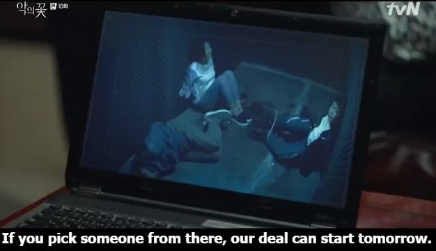 Yeom’s thug brings him a laptop. Yeom puts it on the table with the screen facing Hyun Su.