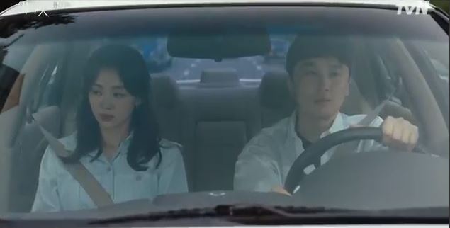 Choi plays the recordings as he drives back. One recording is of In Seo’s mother, the other recording starts to play. The recording is when Kim and Hyun Su drove down to their village to retrieve the photograph Ok Ja had.