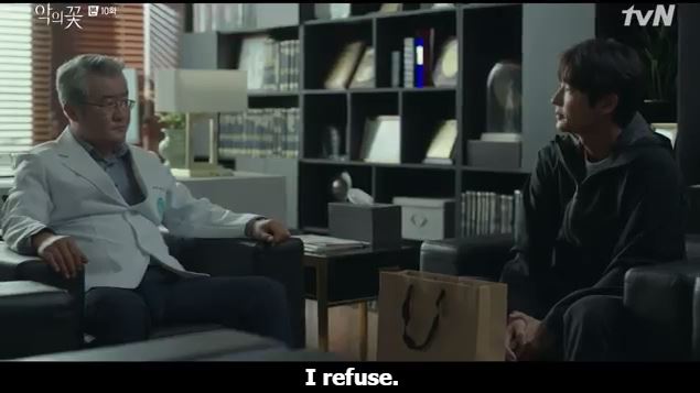 Yeom gives him the terms. He says if Hyun Su breaks even one rule, Yeom will burn all the pieces of evidence. He says the evidence includes people.
