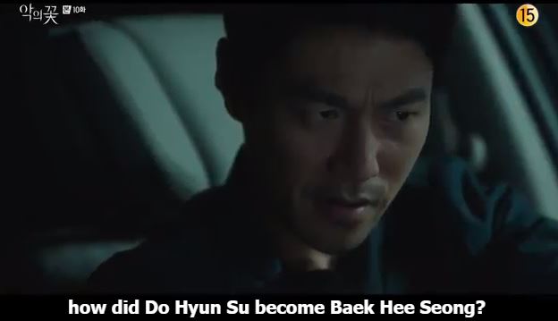 Choi is driving when he hears the recording which plays Kim’s voice saying, “Hyun Su, how did Do Hyun Su become Baek Hee Sung?”. The colour drains off Choi’s face when he hears this and he hits the breaks. Kim goes on asking how Hyun Su managed to fool Ji-won. Choi hears Hyun Su’s voice, “Ji-won knows nothing about this. She doesn’t know my past. She doesn’t know I am abnormal.” Choi replays the recording.