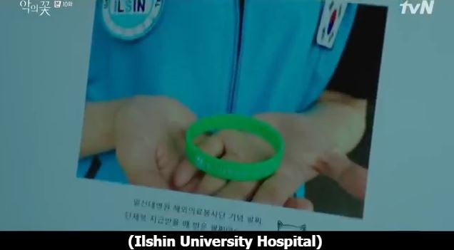 Hae Soo is at her home. She looks up green wristband online. She sees a search result from Ilshin University Hospital’s Overseas Medical volunteer work. she goes into the site and Hee Sung’s father is int he photos standing along with the team. She scrolls down and finds that it is the same wristband from her memory of the accomplice.