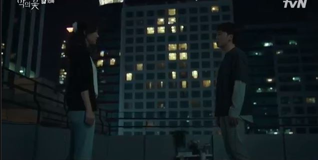 Ji-won is perturbed as she goes to the rooftop of the station. She takes a moment.