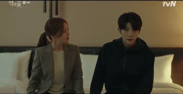 At the hotel room, Ji-won sits beside Hyun Su and she asks what his plan is. He says a fugitive will never tell a cop his plan. She looks up at him. He says he knows that nothing he says is worth anything to someone who suspects him.