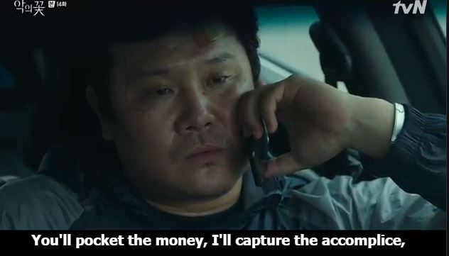 Yeom says no one can easily get a one-up on him. Hyun Su says he did, but the accomplice outsmarted him. He offers to catch the accomplice while Yeom takes the money and Jung Mi Sook gets to live. Yeom says the accomplice is a dangerous person to have as an enemy and asks if he can give him something else.