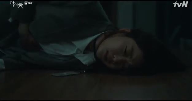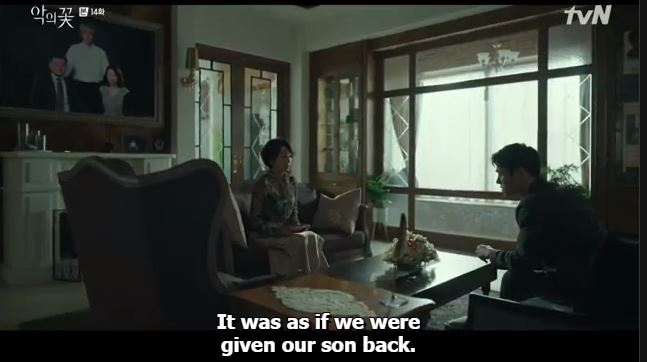 Hee Sung’s mother seems to be having second thoughts about Hee Sung’s plan. She stabbed him the first time around when she discovered he was a killer. She seems shaken after witnessing her son murdering his caretaker in front of her this time. I wonder if she is just jittery or thinking when to strike again.