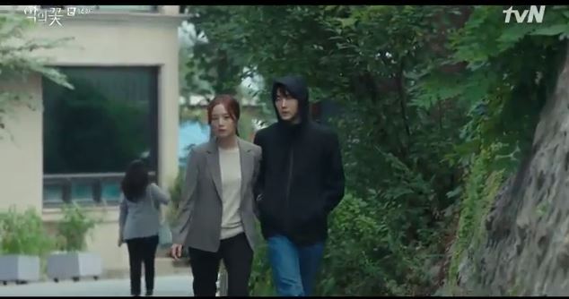 Meanwhile, Ji-won stands outside the motel and explains to the police officer that she is fine and nothing happened. The officer says she is a victim and she says she isn’t.