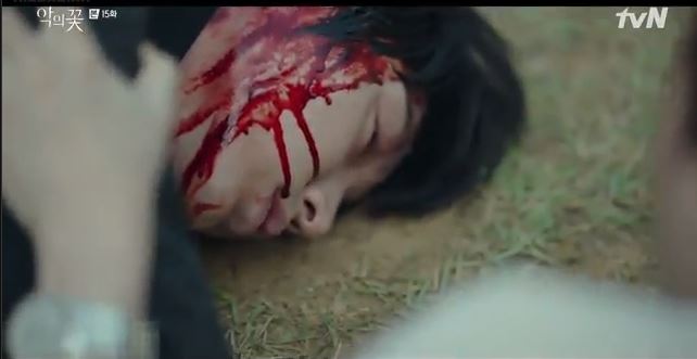 Ji-won sees blood all over the side of Hyun Su’s face. She cries as she tries to move him. Hyun Su closes his eyes and loses consciousness.