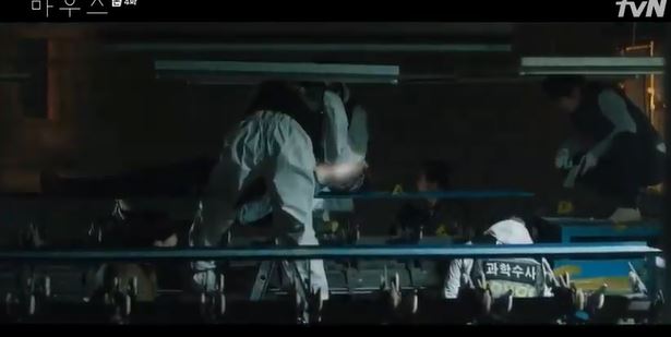 Later, Mu Chi and Shin go to a crime scene- an old clothing factory run by a religious group. They find a body with a missing finger (which was mistaken to be Chi-kook’s finger). They are told the man has been dead for 10 days. The forensic team removes something heavily decayed from the victim’s throat.