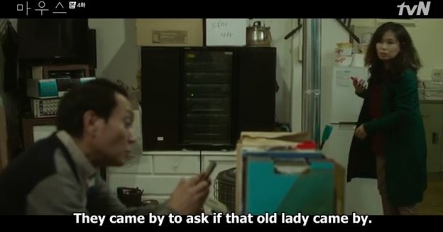 After Ba-reum and Mu Chi leave, the woman asks the man what it was all about. He says they are here asking questions about a murder. The woman recognises granny from the photo but her boss says they shouldn’t tip off the police as he is worried that they may find out that the agency recruits illegal immigrants.