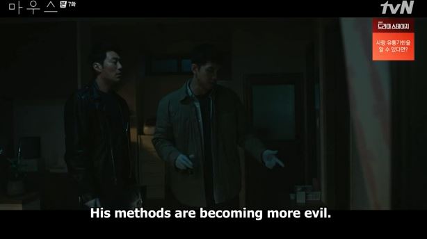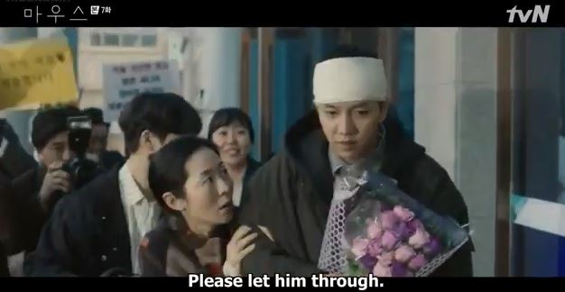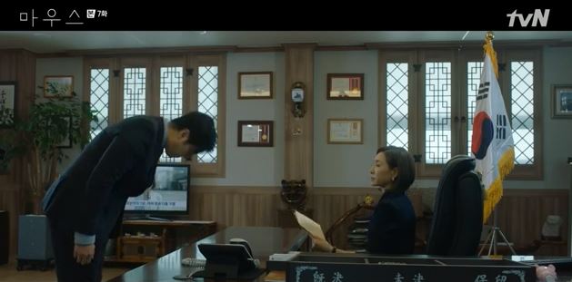 The Chief instructs Mu Chi and Shin as they wait for their inquiry. He tells Mu Chi to say he misfired as he aimed at the suspect’s leg. He tells Shin to say he was angry because Han Kook reminded him of his nephew.