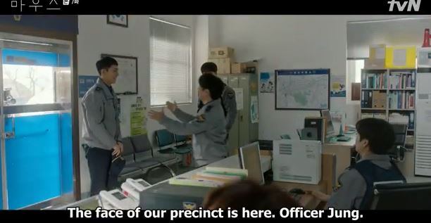 Just then, Ba-reum enters the station. He is Shin’s replacement. Their Chief tells Shin to go easy on Ba-reum as he isn’t normal yet. He says Ba-reum has been reinstated because elections are around the corner and the ruling party wants the approval ratings to shoot up. Shin is dejected as he says it must be nice being the Nation’s son.