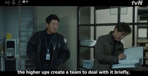 Mu chi says he will resign. Park reminds him that Mu Chi has work to do. He says the evidence management team is issued firearms as they have to go to evidence and collect the evidence themselves. Before leaving, Park says he would have done it himself if he didn’t have a wife to take care of.