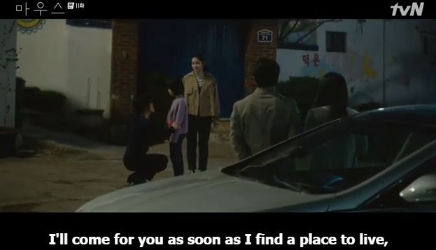 BOng Yi watches as the small girl Yu Na’s mother speaks to her. The mother says she will be back for Yu Na once she finds a place to live. She tells Yu Na to ask Bong Yi for help if she needs anything.