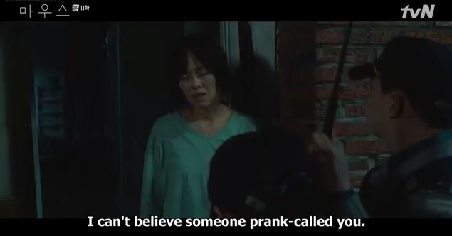 The cops knock on Yu Na’s house. Her drunk mother says that Yu Na is in her bed sleeping and the cops leave.