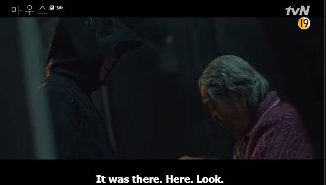 Ba-reum finds granny hiding in one of the houses. She is relieved to see him. She tells him that she found this photo of the victim in her employer’s basement. She looks closer and recognises the shirt the victim is wearing. She notes that it is Bong Yi’s button which she sewed on to Ba-reum’s shirt. Ba-reum asks where she got the photo from. Granny instantly realises that Ba-reum is the killer and tries to run away. ba-reum holds her close and stabs her multiple times, killing her. Granny’s last words are, “My puppy..”.