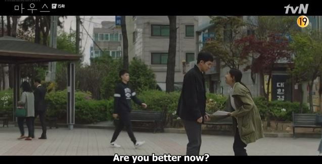 Mu Chi runs out in time to find Ba-reum near the hospital entrance. He calls out, “Jung Ba-reum!”