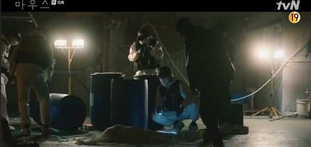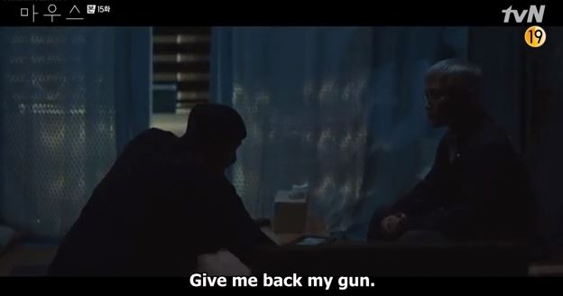 Mu Chi yells that it was Sung Yo Han and he never intended the police to find the body. He is told that since the body was preserved in formaldehyde they can’t tell the time of death. Mu Chi checks the watch Han Kook is wearing (12 oçlock). He is overcome with guilt when he remembers that he was drunk after Mu Won died and he didn’t work on Han Kook’s case. Mu Chi asks if the lungs are there and the forensic expert shakes his head. Mu Chi beats himself up and holds himself responsible for Han Kook’s death.
