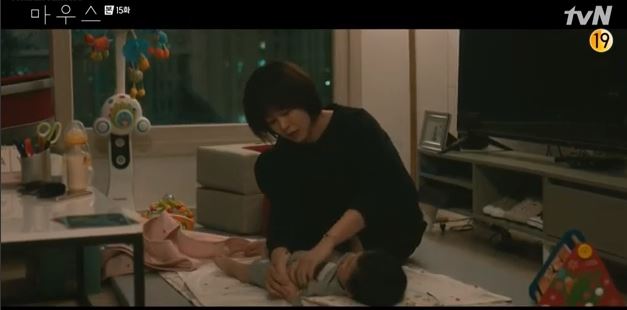 Meanwhile, Hong Ju finds bruises on her baby’s hands. She realises that the sitter was abusing her child. She places a nanny cam on the shelf.
