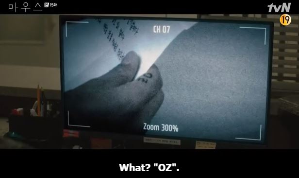 Later, Mu Chi goes through the restored footage. He sees a person in black walking in the frame. The person reads something in his hand. It is a written statement and there is OZ tattooed in his hand. Mu Chi realises that it is the same person who had mugged him on the night of Kang Duk Soo’s murder.