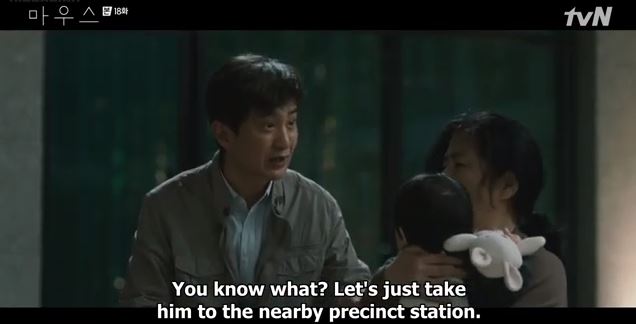 The cops leave Park’s wife with Park. After they leave, he asks her where she picked up the baby from. She says it is their baby. He learns from the cops where they picked up his wife from.