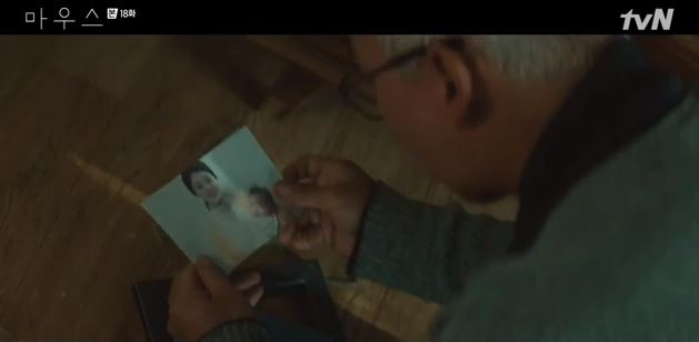 He pushes the photo and glass pieces under the cabinet as Bareum walks in. Ba-reum asks if that photo shouldn’t be seen by certain people. Ba-reum says he got an anonymous text one day when he became a cop.