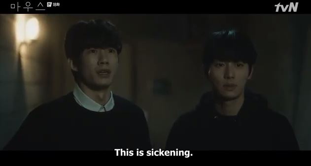 Sung Yo Han puts it up on the basement’s wall. Kim says this is sickening. Sung Yo Han says Daniel was telling the truth. The injured Daniel Lee is sleeping beside them. Sung Yo Han says the killer is a psychopath without a moral compass.