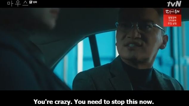 Mu Chi barges in with Lee and grabs Ba-reum too. Ba-reum drops his pillbox. He asks if Ba-reum kills and Lee cleans up after him. Mu Chi says Lee flushes the dashcam footage from the faked suicide (6264 car). Lee asks innocently if it was a murder. Mu chi goes berserk.