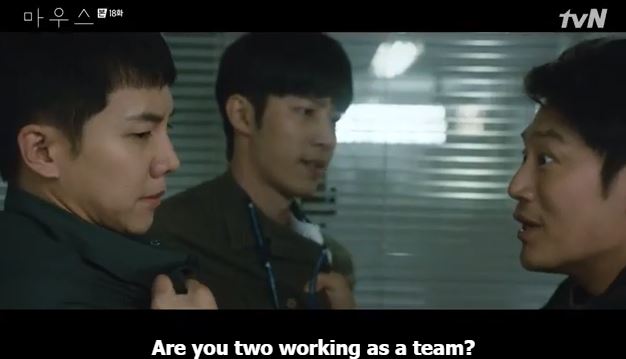 Inside the interrogation room, Ba-reum waits in one room as Mu Chi paces in another with Kang. Lee is in another room and he makes a call out of the CCTV’s view.