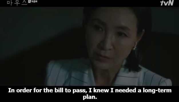 Ba-reum asks how she can take advantage of a victim’s family member (Song Soo Ho). She says it was a dream of a world with no crimes. He asks why she didn’t stop him when he started killing other psychopaths. She says he caught off guard but the public dubbed him a hero, so she changed her mind. She says the public will be seething when they find out that Ba-reum is a serial killer and the bill will be passed easily.