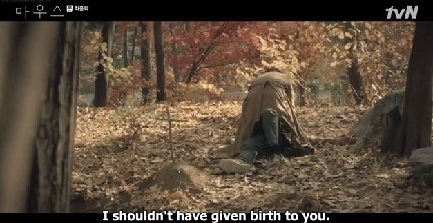 She had followed Jae-hoon and Jae-min into the woods and she found Ja-hoon trying to bury his brother. She had saved JaeMin and tried to strangle Jae-Hoon/Ba-reum. She tells him to die as she says she shouldn’t have given birth to him. Jae Hoon’s vision is blurry as he is being choked.