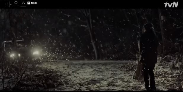Ba-reum drives down the road and hits the breaks as he finds Bong Yi standing in the middle of the road drenched in rain.