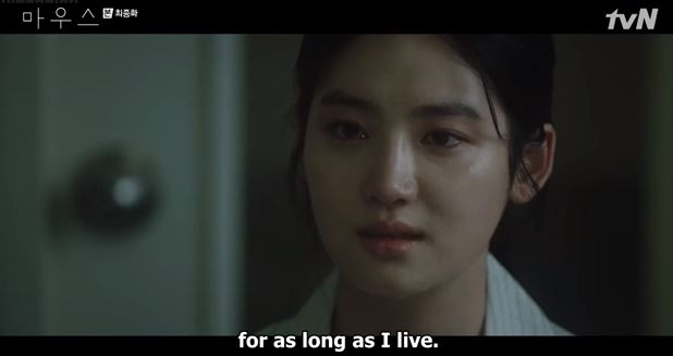 Ba-reum opens his eyes as Bong Yi drops the iron pipe. She tells him he doesn’t deserve to die like this. She tells him to turn himself in and live his entire life in misery. She says she hopes his guilt eats him up. She says she hopes he lives his life miserably wishing he was rather dead. She says that is how she wants him to pay for his sins.