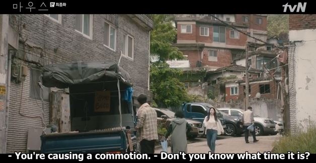 Mu Chi goes to that place and finds Lee sitting outside the tent. He grabs Lee. Ba-reum’s aunt and Hun Suk come out of the tent. She says Lee offered to take her to the broadcast station. Lee apologises to Mu Chi. He says Choi promised a world without crime.