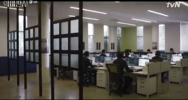 The next day, Yo Han walks into the Ministry of Justice’s 2nd branch. He grabs a headphone from one of the men who is spying on Chairman Min. The men are flustered in Yo Han’s presence.