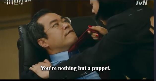 Min steps in and says Yo Han did manipulate the trials. He says Yo Han decided on a conclusion and created evidence to support it. Ga-on’s eyes are downcast as he hears this. Min says that the defence Counsel worked on Yo Han’s side. He also mentions that Ga-on has given a statement regarding this to the Supreme Court. He says a committee will be put together to find out the truth.