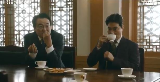 Min says the President and the Chief Justice are just temporary employees chosen by the Foundation. Park serves Sun-A some tea and she drinks it.