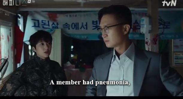 Ji-soo walks in and says that one of the members had pneumonia and he took the pill (Next). She says the pill was donated and he didn’t know. Han looks grim.