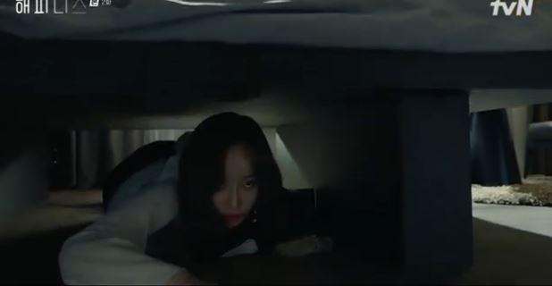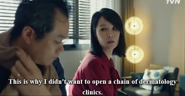 Oh tells her to take the pill as he goes to bring water. Min-Ji takes the pill NEXT (the one Yi Hyun found at the motel room.) Min-Ji complains that she didn’t want to open a chain of Dermatology Clinics. Oh apologises for making her do it. After the two of them walk out of the room. A woman crawls out from underneath the bed.