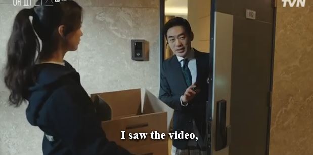 The two go up to apartment 601 to complain about the noise. Oh comes to the door and apologises. He says he was moving furniture. Sae Bom doesn’t buy it n tries to take a look inside. He thanks her for the rice cakes. She asks how he knew they were from her. He says he heard about her. He points at Seo Yoon saying she looks pretty just like the mother and closes the door.