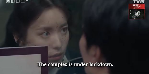 Kook goes to Yeon Ok and says they have to evict the infected person from the building. He tells her off for withholding the information. To get out of the situation, Yeon Ok says she has no idea about this.