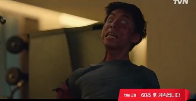 Yi Hyun goes into the gym after he sees that Seung Beom has turned and is trying to bite Oh. Oh tries to get away but Seong Beom holds on to Oh’s feet.
